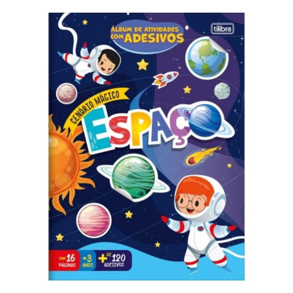 O Álbum de Atividades Cenário Mágico Espaço é um álbum para você criar suas próprias histórias! São mais de 120 adesivos para colar em 8 páginas com diferentes tipos de cenários, como castelos, florestas, espaço e fazenda, prontos para contar divertidas aventuras que você imaginar.