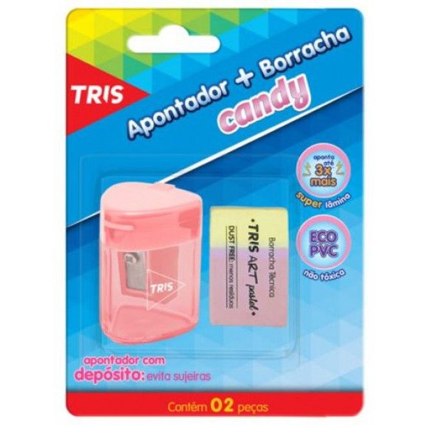 APONTADOR E BORRACHA TRIS CANDY ROSA;
