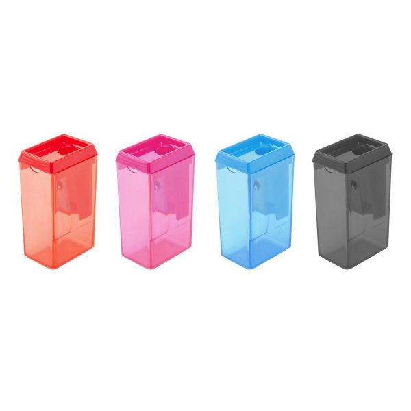 Apontador com depósito - que evita sujeiras- e com 4cm, que cabe em qualquer lugar.