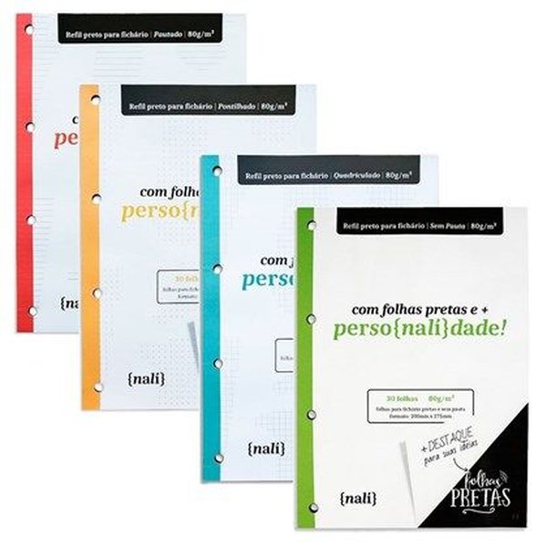 Cheio de perso{nalí}dade, os blocos para fichário preto da Nalí foram feitos para destacar o que realmente importa, as suas ideias!