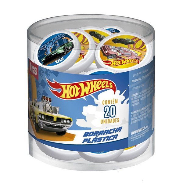 Aventura e velocidade! A paixão pelos famosos carrinhos uniu gerações e hoje Hot Wheels™ é uma marca sinônimo de aventura e velocidade! A borracha Hot Wheels é ideal para apagar grafite e é livre de PVC. Possui textura macia e cada borracha é embalada individualmente, evitando sujeira antes do uso. Borracha com desenhos sortidos.