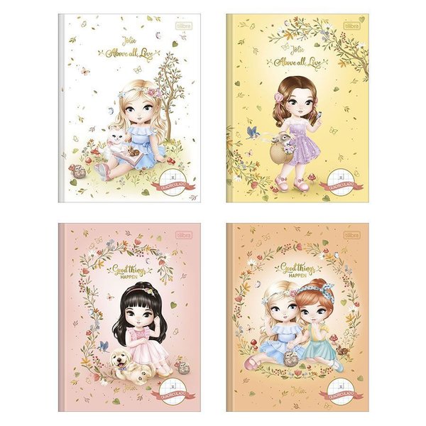 O Caderno Brochura Capa Dura Universitário Jolie 48 Folhas possui capa dura com detalhe metalizado, parte interna decorada, folha dupla de adesivos e folhas pautadas. Ideal para o dia a dia na escola.