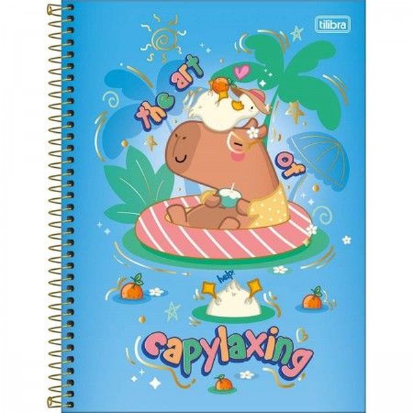 O Caderno Espiral Capa Dura Universitário 1 Matéria Capyclub 80 Folhas da Tilibra é perfeito para você que busca uma opção para organização da rotina de estudos com ilustrações divertidas de capivara.