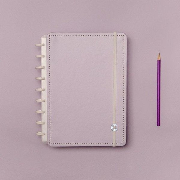 ⋆ A5, Médio ou Grande: Capa e contracapa rígidas, 01 bolsa plástica, 01 folha de instrução de uso e manuseio, com refis e acessórios da marca disponíveis no verso, 01 folha de identificação com calendário no verso, 04 divisórias com abas para identificação (02 pretas e 02 transparentes), 80 folhas offset 90g (60 folhas pautadas e 20 folhas lisas brancas para impressão), 01 suporte com elástico para 01 caneta ou 01 lápis e discos M + elástico.
