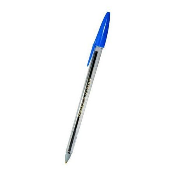 Caneta esferográfica na cor azul, ideal para o dia a dia de trabalho. Com corpo translúcido sextavado. Caneta macia e gostosa. Tampas com respiro. Produto com Certificação INMETRO.