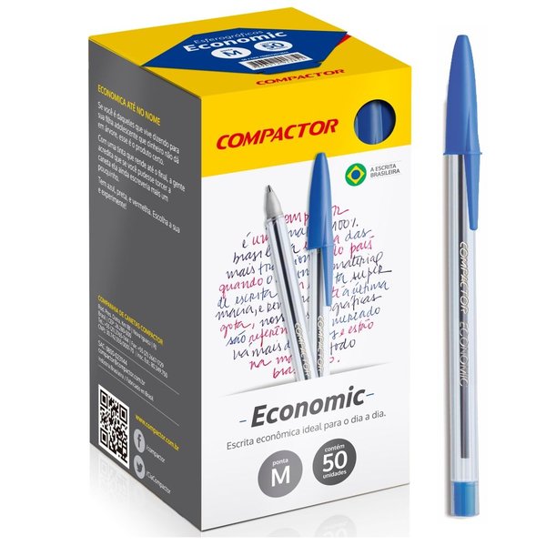 Caneta esferográfica na cor azul, ideal para o dia a dia de trabalho. Com corpo translúcido sextavado. Caneta macia e gostosa. Tampas com respiro. Produto com Certificação INMETRO.