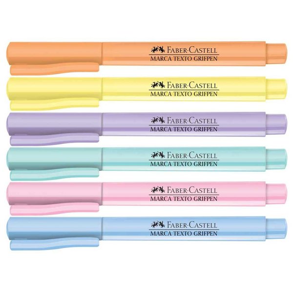 O Marca Texto Grifpen da Faber-Castell possui a ponta chanfrada, que possibilita traços finos e grossos a depender da posição que a ponta é colocada no papel. Seu formato triangular garante maior conforto ao escrever e as cores são em tons pastel. Ah, a tinta não passa para o outro lado da folha viu?
