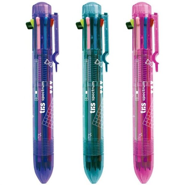A caneta esferográfica Spectrum possui 8 cores, um clássico da época, e que garante mais praticidade no uso.