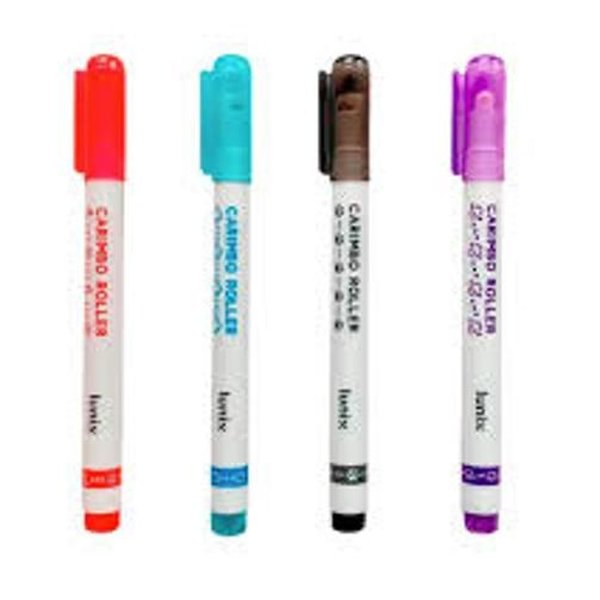 O Carimbo Roller Lunix tem formato de caneta, com tinta à base de água, nas opções de estampas de planeta, patinhas, sol e lua e nuvens.