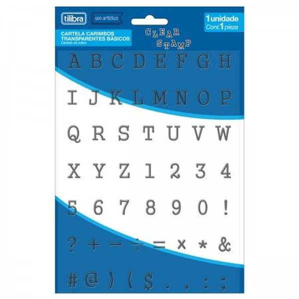 A Cartela Carimbo é uma maneira fácil e divertida para padronizar letras, números e sinais. Este produto vem com as letras do alfabeto, numeração de 0 a 9, pontuações de exclamação, interrogação, ponto final, vírgula, dois pontos e ponto e vírgula; sinais de mais, menos, dividir, multiplicar e igual, asterisco, &, #, @, parênteses e $.
