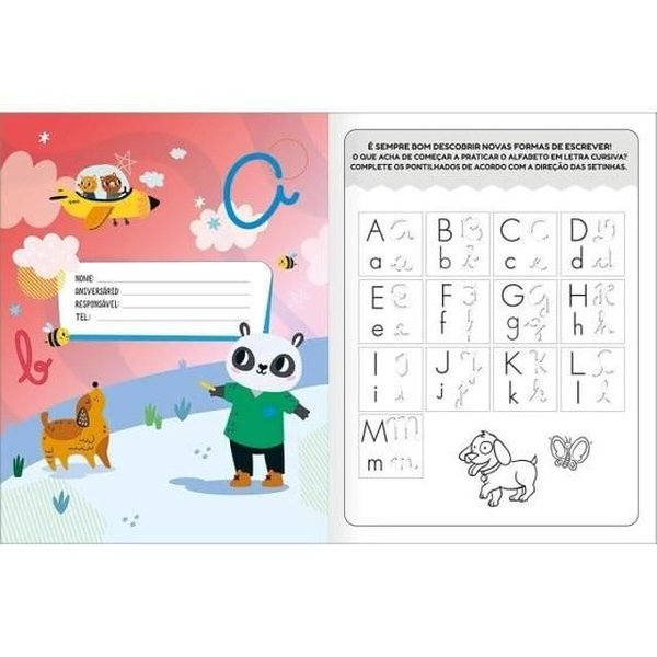 O Caderno de Alfabetização possui 16 páginas, com atividades voltadas para a prática da escrita, matemática,corpo humano, história, geografia, etc.