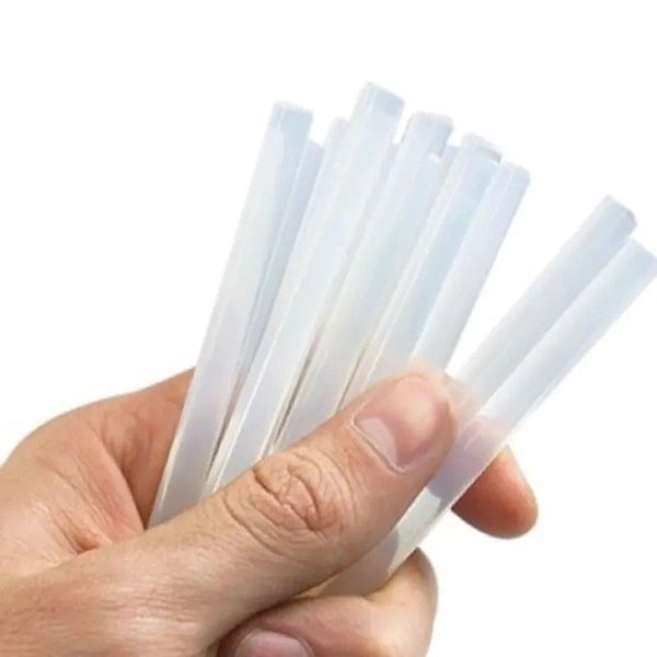 Um pacote com 10unid de bastões de cola quente finos, os cilindros de 30cm são a base de cola siliconada e são ótimos para trabalhos escolares e outras atividades!