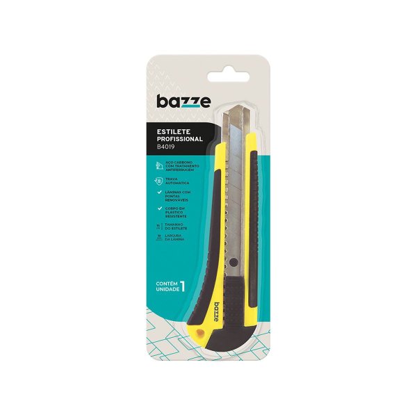 O estilete B4019 possui estrutura metálica e grip emborrachado em formato ergonômico para maior conforto, de lâmina larga e com tratamento antiferrugem.