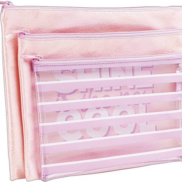 O conjunto Slim vem com três estojos nos tamanhos grande (196 x 254 x 5 mm), médio (164 x 228 x 5 mm) e pequeno (133 x 203 x 5 mm). As opções podem ser utilizadas para guardar itens da escola, escritório e outros acessórios do dia a dia. Os modelos, com zíper e produzidos com materiais resistentes e de fácil limpeza, possuem cores, acabamentos e estampas baseadas nas mais recentes tendências de consumo.
