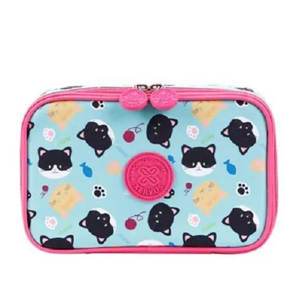 Possui 1 compartimento principal amplo e 1 aba com elásticos para posicionar lápis e canetas.