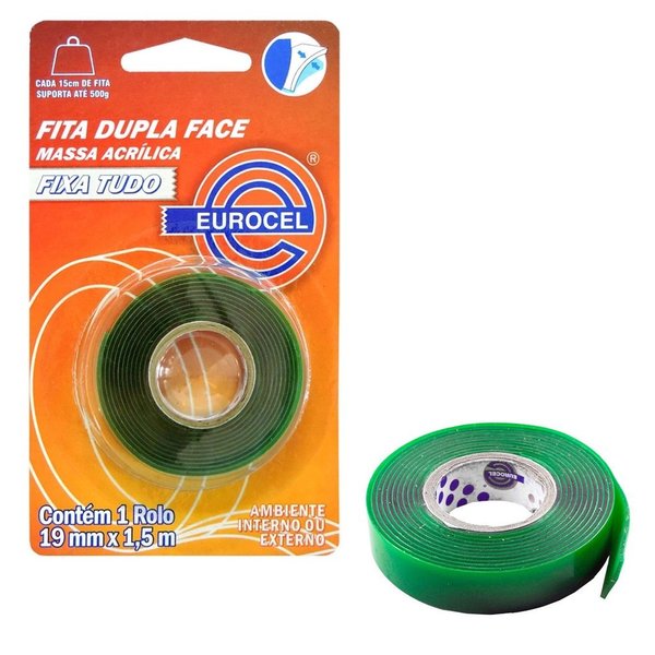Fita dupla face de alta adesão, para fixação de objetos. Uso interno. Pode ser usada em superfícies como metal, pintura, alumínio, PVC, PP, PU, vidros.