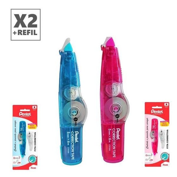 Nova fita corretiva da Pentel que corrige a seco, possibilitando a escrita imediata, após a aplicação; com formato que promove maior conforto.