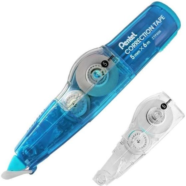 Nova fita corretiva da Pentel que corrige a seco, possibilitando a escrita imediata, após a aplicação; com formato que promove maior conforto.