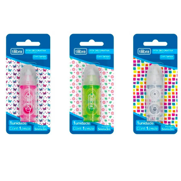 A Fita Decorativa BFQ 5mmX3m é fácil e prática de usar, ideal para ser usada em qualquer tipo de papel para enfeitar e organizar diversas anotações, além de ter três designs divertidos e personalizados (borboletas, flores e quadrados).