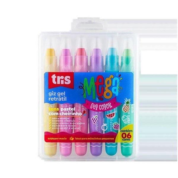 Giz de Cera Retrátil 6 cores Tons Pastel Mega Gel Color Tris