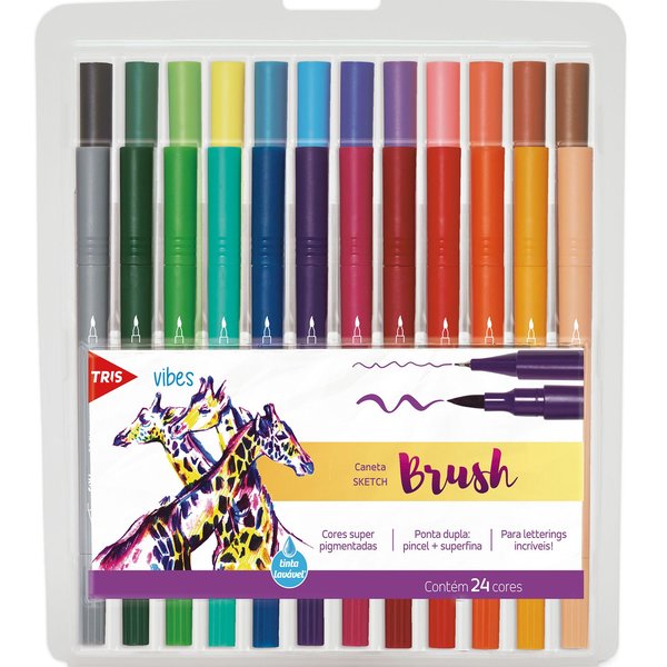 Caneta Hidrográfica 24 Cores Ponta Dupla Vibes Sketch Tris