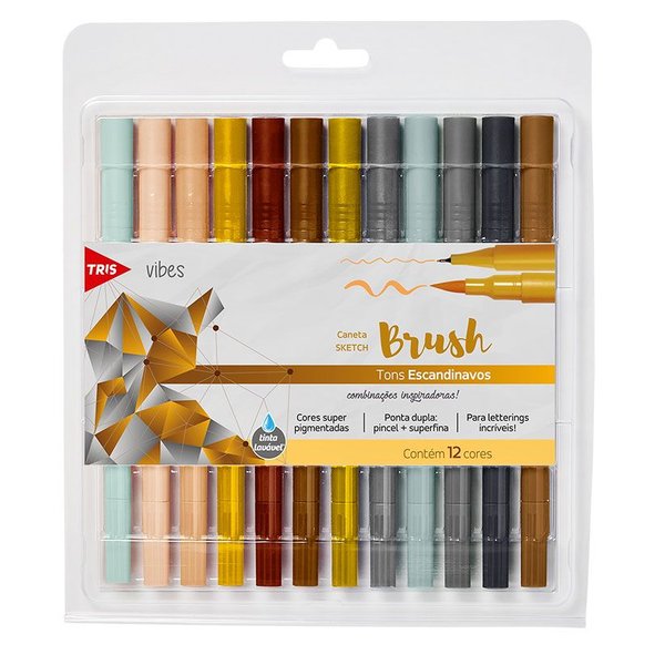 Caneta Hidrográfica 12 Cores Ponta Dupla Vibes Sketch Escandinavos Tris