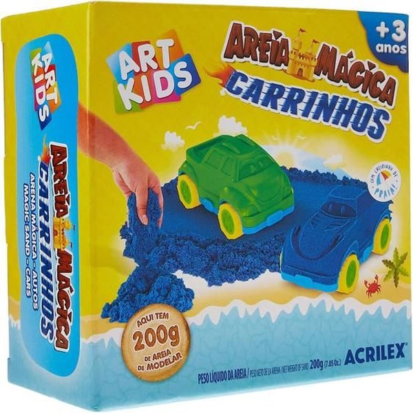 Contém: 1 pote de areia mágica azul e 2 moldes de carrinhos.