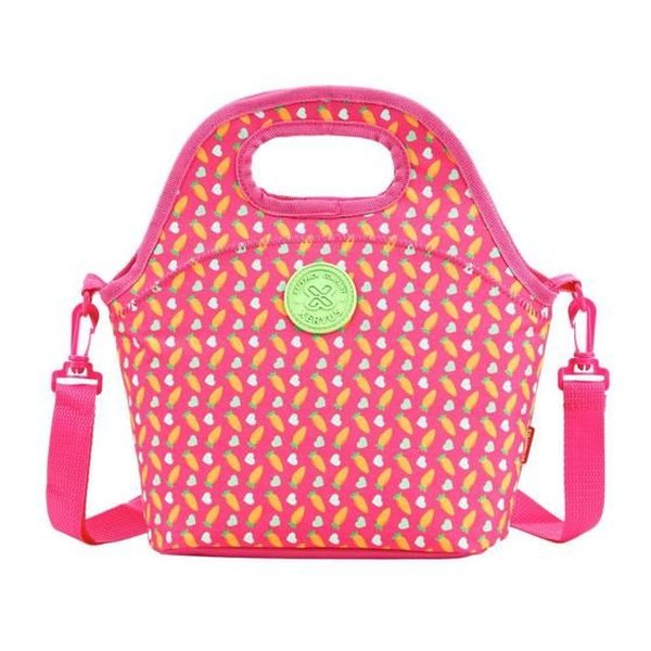 Lancheira produzida em poliéster resistente, com estampas em toda a superfície e aplicação de patch emborrachado.