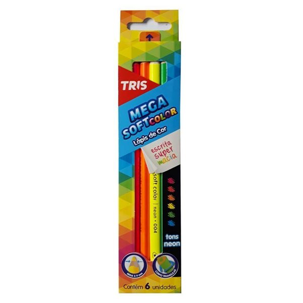 Lápis de Cor 06 Cores Triangular Mega Soft Color Neon Tris
