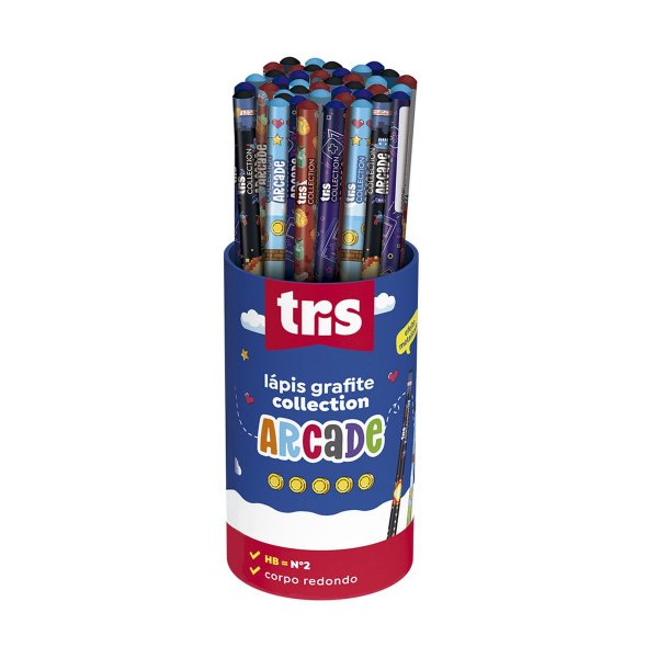 Inspirado nos videogames clássicos, o lápis grafite Arcade conta com 4 estampas e possui efeito metalizado e espaço para colocar o nome.