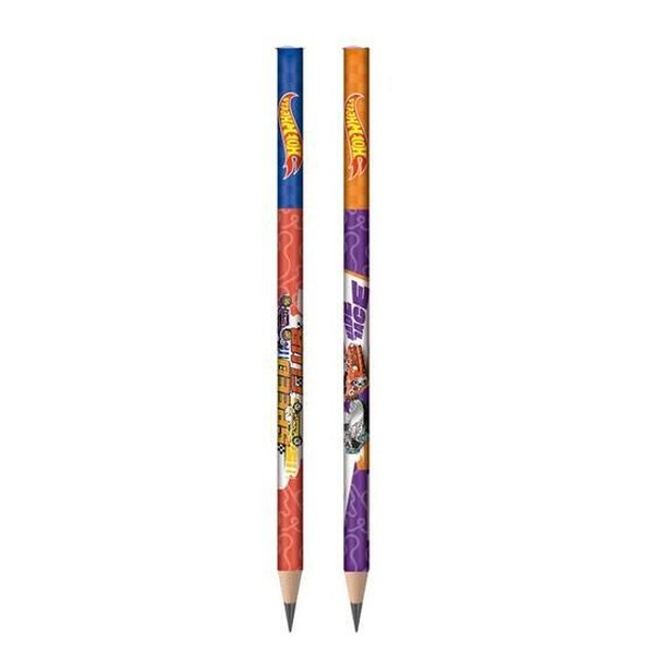 O lápis preto Hot Wheels possui corpo redondo, traço 2B com estampas divertidas!