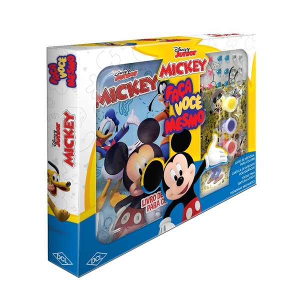 O kit Faça Você Mesmo traz um livro repleto de imagens para colorir do Mickey e sua turma,