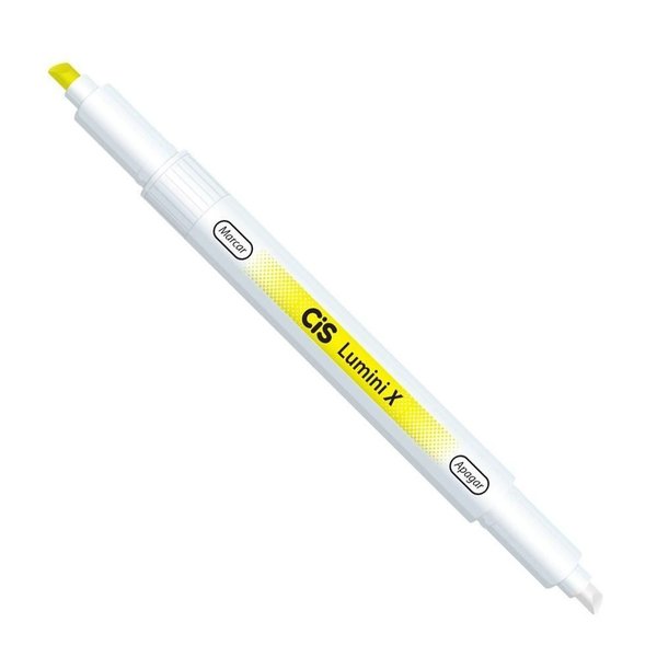 O Lumini-X é o grande destaque dos marca textos Cis, pois ele conta com um diferencial muito importante, que é sua tinta apagável, se você destacou alguma parte errada, basta passar com o outro lado do marcador e remover a tinta.