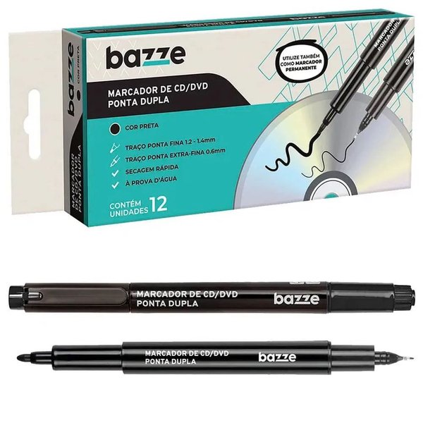 o Marcador permanente de CD DVD Ponta Dupla da Bazze possui secagem rápida e não borra a superfície, o produto oferece eficiência e praticidade, marque, risque, anote e mantenha seus objetos devidamente organizados.