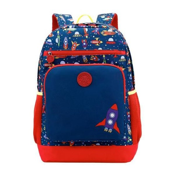 - Produzida em poliéster resistente e com estampa de Foguetes,
