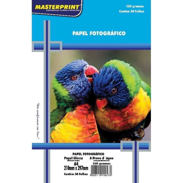Papel Fotográfico, Glossy, Branco, Alta Resolução, para impressão a jato de tinta.