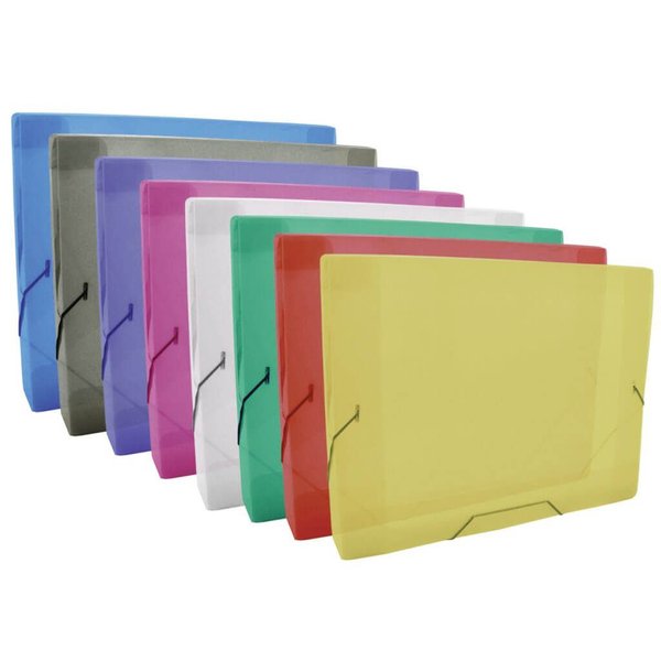 Possui abas para fixar os documentos no interior da pasta e elástico para fechamento com terminação em plástico.