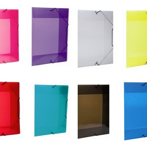 Pasta aba elástico em polipropileno, colorido, com apenas uma seção. Ideal para guardar documentos e trabalhos escolares.