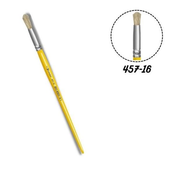 Pincel Redondo de cabo longo amarelo com cerdas naturais e virola em alumínio.