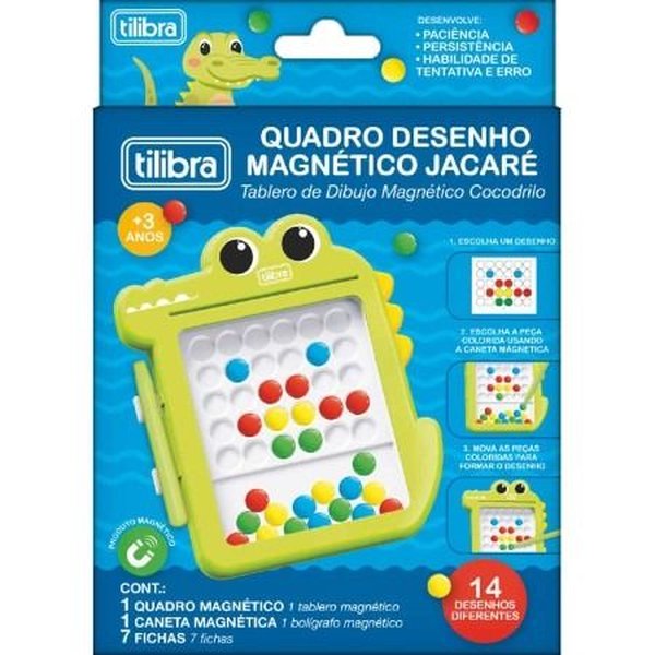 Este quadro de desenho magnético educativo da Tilibra é perfeito para estimular a coordenação motora e a percepção de formas e cores. O produto, com um formato de jacaré, possui 28 peças plásticas internas, acompanha uma caneta magnética e 7 fichas para diferentes níveis de desafios de encaixe. Certificado pelo INMETRO, o quadro de desenho magnético garante segurança e durabilidade para o uso diário. Adquira agora o seu e proporcione momentos de aprendizado e muita diversão para as crianças!