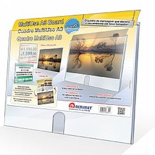 Fabricado em poliestireno, é ideal para expor avisos e comunicados.