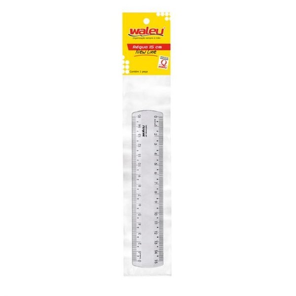 RÉGUA NEW LINE 15CM WALEU – POSSUI UM EXCELENTE ACABAMENTO, RESISTÊNCIA, DURABILIDADE. SUA IMPRESSÃO TAMPOGRÁFICA PERMITE QUE AS MEDIDAS NÃO DESBOTEM OU DESGASTEM COM O TEMPO DE MANUSEIO.